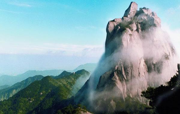 天柱山,亦稱“皖山”或“潛山”,在潛山縣城西北部,漢武帝曾封為南岳。主峰天柱峰,海拔1485米,石骨嶙峋,奇峭險(xiǎn)峻。四周有飛來峰、天獅峰、蓮花峰、觀音峰、黑虎峰等山峰,危崖羅列,怪石嵯峨;云海瀑布,幽深瑰麗。有三祖寺、馬祖庵、司元洞、渡仙橋、煉丹臺(tái)、石牛洞等勝跡。山中有“天柱云霧”名茶及瑞香木、魚鱗木等多種珍貴植物。為世界地質(zhì)公園、國(guó)家重點(diǎn)風(fēng)景名勝區(qū)。境內(nèi)的天柱山又名皖山、皖公山,因其主峰“一柱擎天”而得名。公元前106年漢武帝南巡時(shí)封其為“南岳”,后為隋文帝詔廢,故被人們尊為“古南岳”。景區(qū)內(nèi)“峰雄、石奇、洞幽、水秀”,兼有豐富的人文景觀,集北山之雄,南山之秀于一身,自然風(fēng)光雄奇靈秀,人文景觀博大精深,堪稱一幅幅絕妙的山水畫卷。1982年被國(guó)務(wù)院公布為全國(guó)首批44家國(guó)家級(jí)重點(diǎn)風(fēng)景區(qū)勝區(qū)之一,2011年5月5日批準(zhǔn)為安徽繼黃山、九華山之后,第三家“AAAAA”級(jí)旅游區(qū)、并獲得國(guó)家森林公園、國(guó)家地質(zhì)公園、中國(guó)自然和文化遺產(chǎn)地等稱號(hào)。