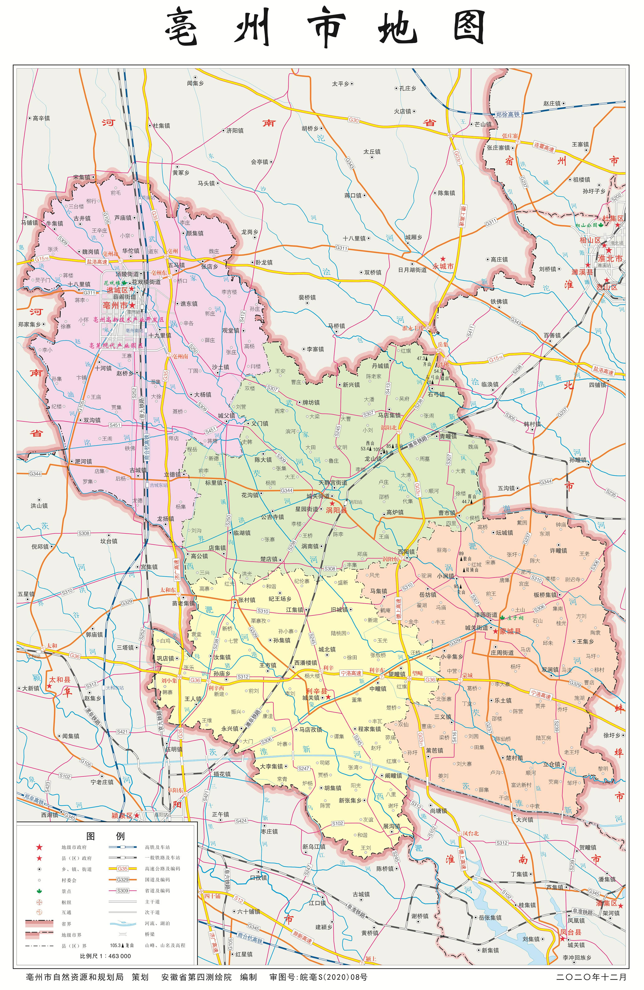 亳州市轄1市轄區(qū)、3個縣: