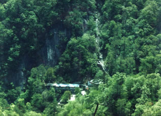 天堂寨森林公園的水景主要表現(xiàn)在瀑布與溪水潭池上,其中尤以一號(hào)瀑布、三號(hào)瀑布、龍井河溪為最。一號(hào)瀑布(九影瀑布):瀑布高掛,落差71米,水簾幅寬8米,瀑布下有深潭,潭面30平方米。三號(hào)瀑布(瀉玉瀑布)垂直高度62米,水簾寬11—13米,瀑巖呈淡紫色,略傾斜且?guī)r面凸凹參差不齊。