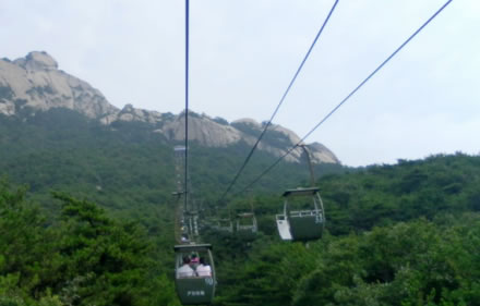 天池峰,為天柱山的第二高峰,它稍高于飛來峰,海拔1426米。天池峰,一裂為三,由兩段石條連接在一起,稱為“渡仙橋”,登上天池峰頂,可觀日出、云海、佛光、晚霞景觀?邕^渡仙橋,即達(dá)方圓不足10平方米的一平臺,臺中大小兩個石坑,稱“天池”。天池平臺外沿是懸崖絕壁,稱試心崖。試心崖可觀賞“天柱山佛光”景觀。