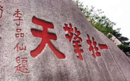 天柱峰下,有一峰與主峰裂有一縫,俗稱小天門,又稱“一線天”。峰高不過10米,如一初開的花朵,因而峰名“花峰”。天柱峰的石壁上,有楷體橫書“頂天立地”四字。為民國廿九年,國民黨將領(lǐng)劉義純題寫。