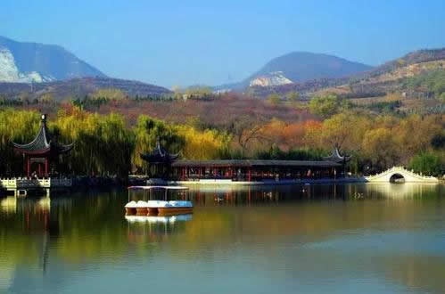 小江南:湖水面積16308平方米,湖邊小橋、挑臺、駁岸小路曲折。