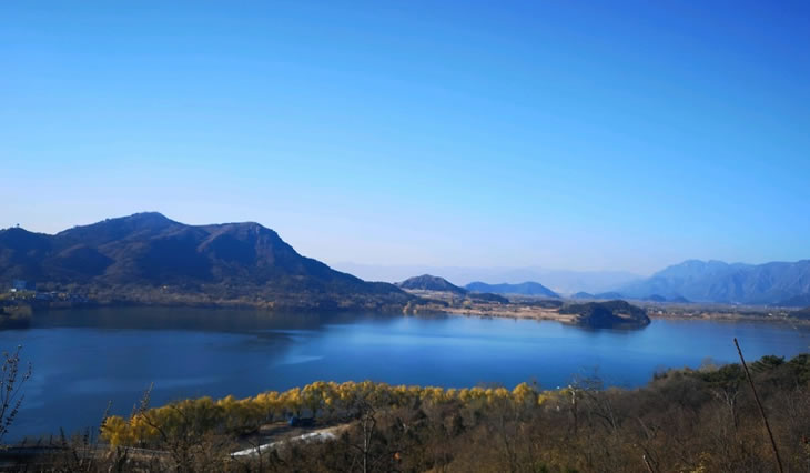 十三陵水庫 十三陵水庫位于北京市昌平區(qū)十三陵鎮(zhèn),水庫建于1958年。為山區(qū)盆地水庫,占地面積751公頃,其中陸地面積440公頃,水面311公頃。水庫四周群山矗立,兩岸有大片臺地、坡地,水面平穩(wěn),水深變化較小。水面受開闊度、水深和不同環(huán)境色彩影響,顯現(xiàn)出不同景觀效果。如在大壩附近,山高水深,水面倒映山影。而水庫上游,水面寬闊、岸坡平緩,視野開闊,在夕陽映照下,遠(yuǎn)山連綿,近水蕩漾。那點綴在遠(yuǎn)山近水之間的片片果林及點點皇陵,更增添了一層飄忽不定的朦朧色彩。