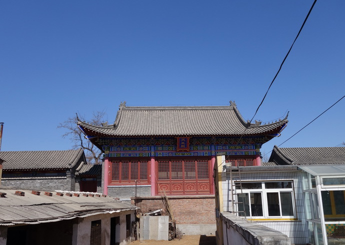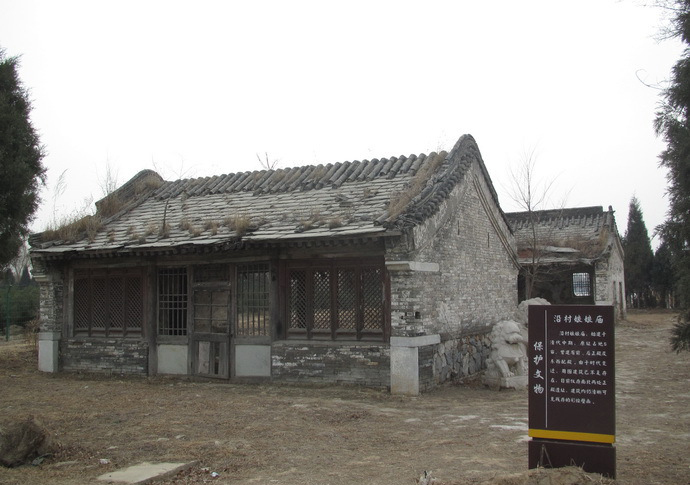 沿村娘娘廟 沿村娘娘廟始建于明代,清代中期重修,2011年在拆除村辦企業(yè)大棚后顯露出來(lái)。依地勢(shì)坐南朝北。原為四合式,由于時(shí)代的變遷,周圍建筑已不存,現(xiàn)僅存前、后兩進(jìn)殿宇,前殿為硬山筒瓦卷棚頂,前后出廊;后殿為硬山筒瓦大式,前出廊。兩進(jìn)殿均為石望板頂,廊心墻處為軟心,梁檁彩繪及壁畫仍清晰可見(jiàn)。