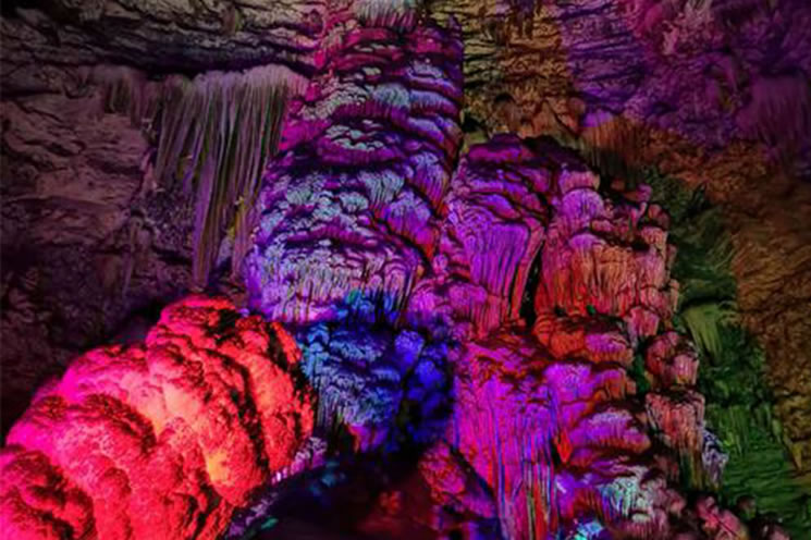云水洞 云水洞位于上方山國家森林公園內(nèi),洞口海拔530米,為串珠狀近水平洞穴,是北京開發(fā)最早的溶洞。已探測的洞道長度613米,有7個大廳、108個自然形成的巖溶景觀。其中最著名的景觀“擎天柱”發(fā)育于第2洞廳,是一個高38米、直徑8米的巨型石筍,是全國石筍之冠。石筍兩側(cè),有一排厚薄和長短各異的石鐘乳,可敲打演奏出許多優(yōu)美動聽的樂曲。