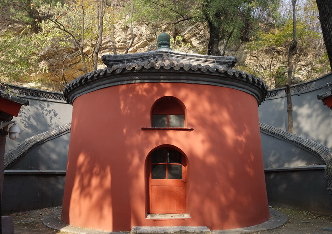 鐵瓦寺 鐵瓦寺位于河北鎮(zhèn)政府院內(nèi),是北京市重點文物保護單位,鐵瓦寺因殿頂鋪滿鐵鑄的瓦而聞名。該寺坐北朝南,背倚山巖,前臨大石河。 山門兩旁各有配殿二間,清水脊、石板頂,殿前各有一株古柏,院中間即為鐵瓦殿,是一座圓形的建筑,高6米,直徑近6米,殿墻刷成鐵紅色,券形門窗與大殿的圓柱形和諧相宜。攢尖式殿頂,鐵質(zhì)塔剎,頂尖由寶珠收攏,頂上自塔剎垂下六條鐵質(zhì)屋脊,將頂面均分成六個扇面形,頂面鋪蓋鐵瓦共458塊,每塊瓦長0.31米,直徑0.13米,重約4公斤,總重量約1882公斤。鐵瓦大部分鑄于明代,個別是清康熙時期修繕時補上的。