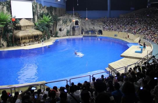 海洋劇院——中國(guó)同類型最大、擁有三千多座位的海洋劇院里,海豚表演和海獅表演的場(chǎng)館。