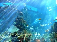 主要展品:鞭蝴蝶、長(zhǎng)吻鼻魚、多帶蝴蝶、副刺尾魚、海葵、海馬、黃高鰭刺尾魚、藍(lán)綠光鰓、藍(lán)紋蝴蝶、鐮蝴蝶、牛角、六斑刺鲀、珊瑚、石斑魚、石頭魚、鲀科魚、心斑刺尾魚、小丑魚、熊貓龍、醫(yī)生魚。