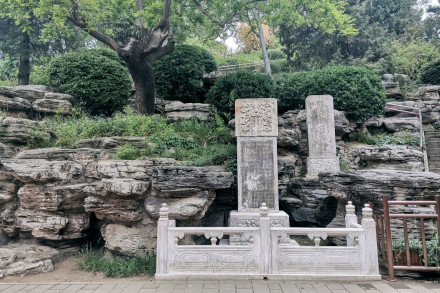 現(xiàn)此處立有碑刻兩通,分別為:“明思宗殉國(guó)處”碑和明思宗殉國(guó)三百年紀(jì)念碑