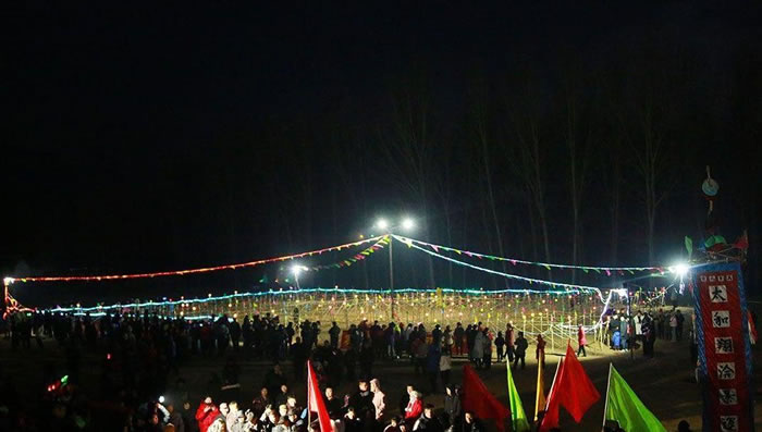 九曲黃河陣燈俗 九曲黃河陣燈俗俗稱(chēng)“燈場(chǎng)子”,流傳于太師屯鎮(zhèn)東田各莊村。 明代洪武四年(1371),山西移民將“燈場(chǎng)子”傳入東田各莊,傳承至今,已有六百多年的歷史。 村中劉繼華老人保存的九曲黃河陣燈會(huì)圖譜已有百年歷史,圖中陣式按周易九宮八卦方位,以富貴不斷頭的傳統(tǒng)圖案九曲而成。陣內(nèi)乾、坎、艮、震、巽、離、坤、兌八宮加上中宮共有九宮,系模擬古代戰(zhàn)陣而成。 每年春節(jié)期間,東田各莊農(nóng)歷正月初十開(kāi)始扎燈,正月十四、十五、十六三天正式舉行燈會(huì),正月十七后撤燈。燈會(huì)期間,人們從四面八方趕來(lái)觀燈賞會(huì),走燈陣,看大戲。走進(jìn)燈陣入口以后,如能順利地通過(guò)連環(huán)陣,再?gòu)某隹诜祷,就意味著一年順順?dāng)當(dāng)、平平安安,故當(dāng)?shù)赜?ldquo;順著燈陣走,能活九十九”的說(shuō)法。 東田各莊九曲黃河陣燈俗有兩個(gè)主要特點(diǎn),一是燈場(chǎng)與花會(huì)相結(jié)合,二是燈會(huì)與戲曲表演相結(jié)合。九曲黃河陣燈會(huì)帶有某種智能游戲的性質(zhì),燈陣及其外延的燈會(huì)包含著豐富的文化內(nèi)涵,具有較高的歷史文化研究?jī)r(jià)值。 2008年6月7日,九曲黃河陣燈俗被國(guó)務(wù)院公布為第二批國(guó)家級(jí)非物質(zhì)文化遺產(chǎn)名錄。 風(fēng)景名勝