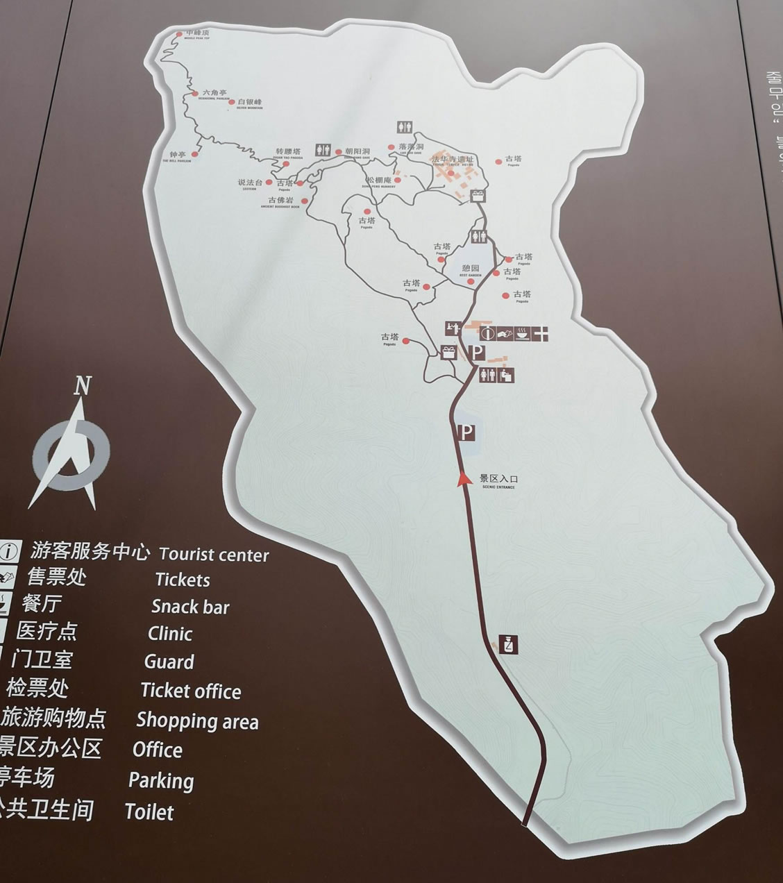 無銘覆缽密檐式塔位于法華禪寺址西南?偢8.8米。塔平面為六角形。基座、塔身略同前述各塔,但基座束腰處雕有金剛力士像則又不同前述各塔。塔身以上部位有檐三層,均作冰盤檐式,頂作疊澀式。再上依次為覆缽體、塔剎座和相輪,F(xiàn)存塔剎相輪以下部分。