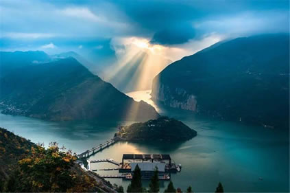 瞿塘峽又名夔峽。古時(shí)稱廣溪峽、巴峽、西陵峽等,為長江三峽第一峽。瞿塘峽西起奉節(jié)白帝城,東至巫山大溪鎮(zhèn),名勝古跡最為豐富。峽谷陡峭,兩岸雙峰欲合,斷巖千尺,古木蒼藤,好似繡幕高懸;峽中江水排山倒海,勢如山崩,聲震數(shù)里。2008年,三峽大壩蓄水至海拔175米后,瞿塘峽已是高峽平湖,兩岸險(xiǎn)峰峻石依舊,既有滿山紅葉似彩霞的絢麗多姿,又有碧水蕩漾、煙波浩渺的靜美壯闊。