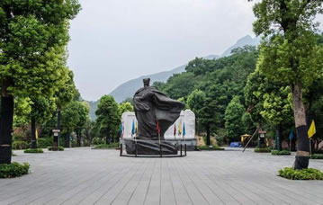 忠義廣場位于白帝山北側(cè),占地7000平方米。廣場中央是一尊諸葛亮鑄像,鑄像總高7.9米,人像高5米。諸葛亮手握羽扇,衣襟飄拂。鑄像后面是用漢白玉雕刻制作的《出師表》碑,碑長16米、高4米、厚2米,正面書前《出師表》,背面書后《出師表》。