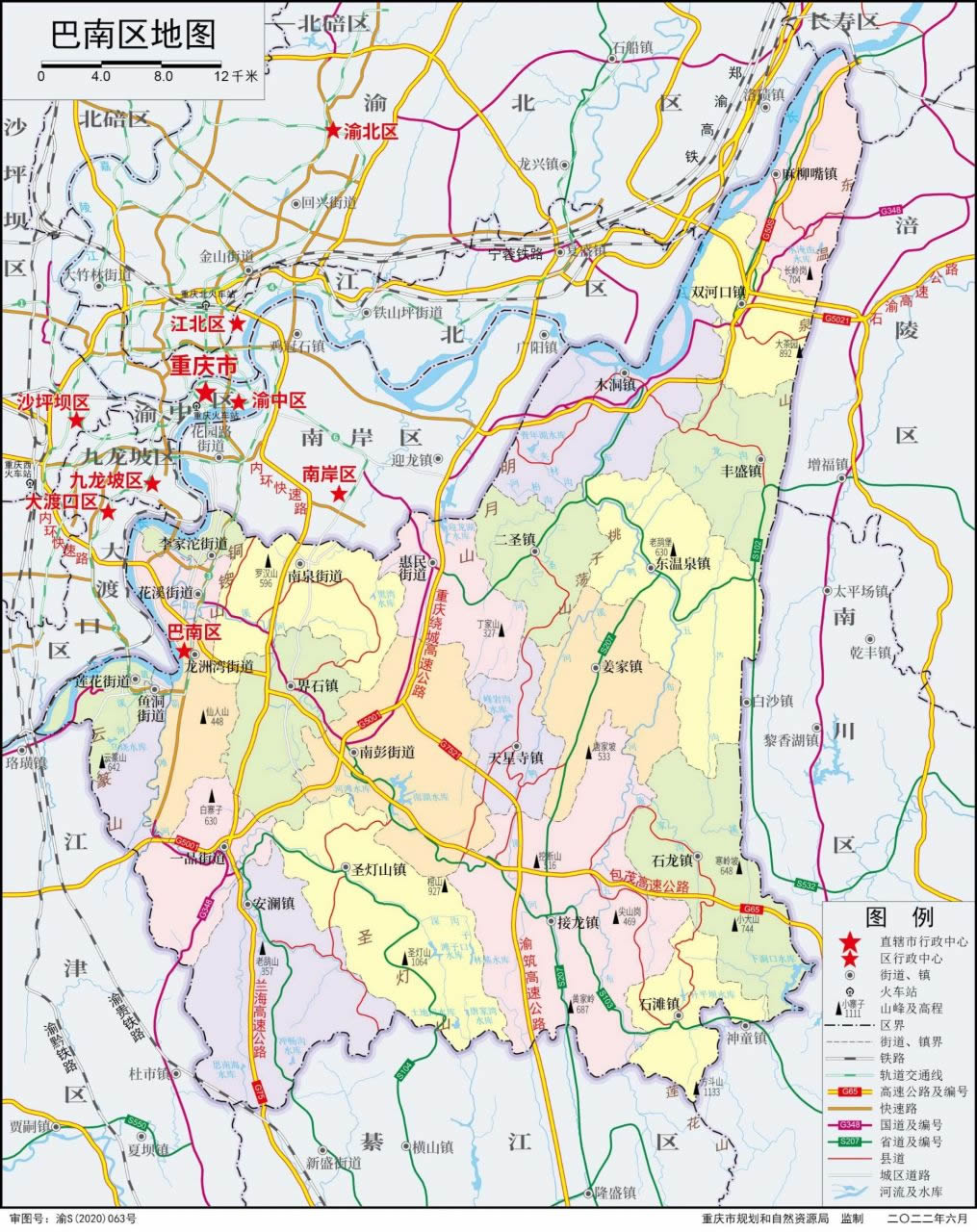 巴南區(qū)轄9個街道、14個鎮(zhèn):