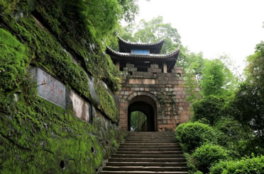 護國門重慶十大標(biāo)志性旅游景觀之一。護國門為釣魚城的標(biāo)志性建筑,位于城南第二道防線上,在釣魚城題刻的右側(cè)上部。在釣魚城8座城門中,護國門是規(guī)模最大的一道雄關(guān),城門洞高3.24米,寬2.45米,進深6.42米。城臺上為重檐歇山頂式城樓,高7米。其樓北倚峭壁,南臨懸崖,旁有古榕交柯,蔚為壯觀。當(dāng)年,釣魚城軍民曾在護國門前面的峭壁上開鑿石穴,架梁鋪木,施以棧道出入。情況緊急之時,可迅速地將橫梁上的木板抽掉,使其通道斷絕,猶如我國北方古城的城門吊橋。如今,棧道石穴猶存。在護國門平頂門道南壁和后門洞東側(cè),還保留有宋代的城門構(gòu)件和登城的石級。