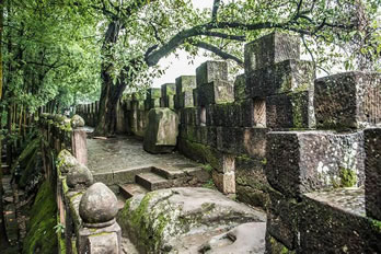 石照縣衙位于城中朝天堰天池右側(cè)原名風(fēng)火墻的坡地上。釣魚城石照縣衙是宋蒙(元)戰(zhàn)爭時期延續(xù)到元朝至元十六年(1279年)的南宋地方政權(quán)機構(gòu)。在南宋王朝滅亡之后還堅持3年之久,被稱為“南宋最后的縣衙”?h衙由中軸線及東、西兩側(cè)副線三部分建筑構(gòu)成。縣衙的首部建筑照壁與縣衙大門相對,構(gòu)成居中和震懾的作用和效果。照壁主體由青石砌成,高大方正。壁垣頂鑿飾斗拱、挑梁及圓筒青瓦,鴟尾銜壁脊,四角小翹,似如崇樓廣廈。