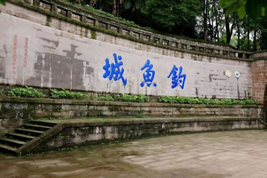 釣魚城總面積2.5平方千米。整個山頂東西長1596米,南北寬960米。三山聳峙,三江匯流,山水相擁。山上有一塊平整巨石,傳說有一巨神于此釣嘉陵江之魚,以解合州百姓饑饉,釣魚山因此得名。因在釣魚山上修寨筑城,故名釣魚城。釣魚城內(nèi)地理地貌保存完好,植被豐茂,登釣魚城舉目眺望,山巒起伏,河流蜿蜒,田園風(fēng)光,歷歷在目,具有以“方山丘陵,平行陵谷”為地貌特征的自然生態(tài)環(huán)境。歷史上的釣魚山是“紅樹青山擁釣臺”,主要樹種有香樟、黃葛樹、柏樹、馬尾松、慈竹、楠竹、桂花、蠟梅、柑橘、橙子、枇杷等。自然景觀有天池夜月、古桂飄香、峰頂白云、樟林鵑啼、古道奔馬、三龜石、東谷晴霞、薄刀嶺等。