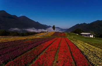 云中花海行程約13.5公里,有繁花樹(shù)影、嫣彩織帶、錦臺(tái)繽紛、錦繡花街等7大景點(diǎn),種植了硫華菊、波斯菊、金雞菊、紫松果菊、大濱菊、黑心菊、金盞菊、翠菊、天人菊等50余種高山花卉,花期為5~10月。