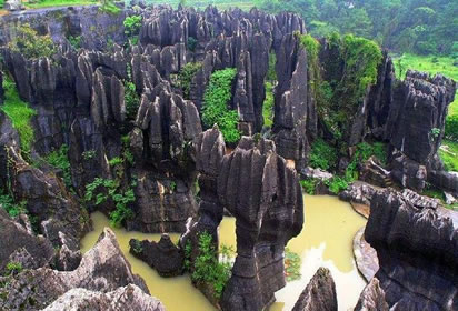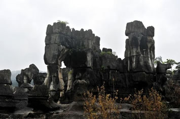 以地表石林為代表的典型的喀斯特地貌景觀十分吸引人。該類景觀表面呈虎皮狀,形成一系列各不相同的觀賞景點。在這里,群峰壁立,奇峰危石,可謂千姿百態(tài),石門、石寨、石柱等,酷似人工堆疊,卻無人工痕 跡;飛禽走獸的石頭,栩栩如生、惟妙惟肖;田園阡陌、炊煙裊裊,清泉碧池、懸崖雪瀑,白鶴青 、 碧空鳥語,清麗若未施粉黛的閨秀楚楚動人。其主要景觀有情朗峰、香爐山、巨扇、地縫一線天、化石 、石鼓、將軍石等數(shù)十處。顯示出萬盛石林景觀的美感與靈性。