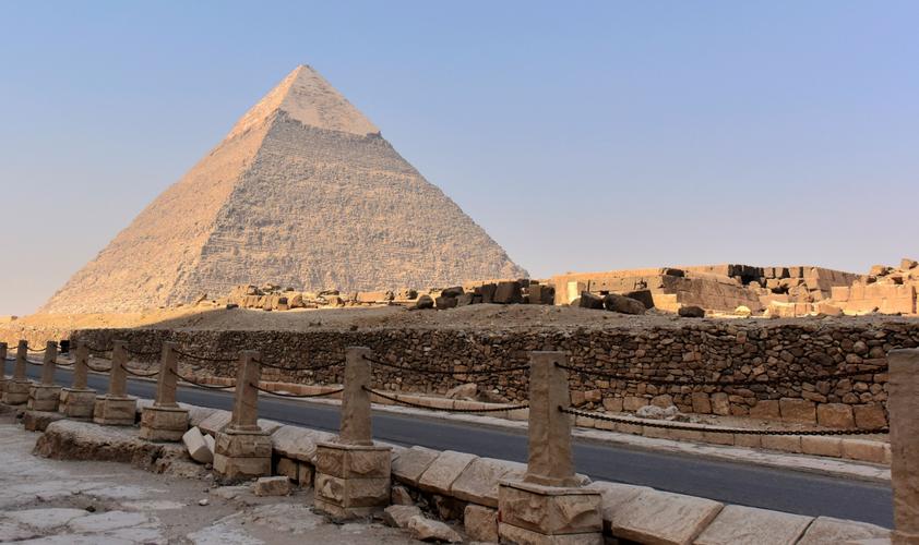 胡夫金字塔 胡夫金字塔位于埃及首都開(kāi)羅西南約10公里的吉薩高地。胡夫金字塔是埃及現(xiàn)存規(guī)模最大的金字塔,又稱吉薩大金字塔,是古埃及第四王朝的法老胡夫的金字塔,主要作為其陵墓,也是世界上最大、最高的埃及式金字塔。約建于前2580年,完工于前2560年。位于吉薩金字塔群的中央一座,也是最為高大的,被喻為“世界古代八大奇跡”之一。 在埃及境內(nèi)已發(fā)現(xiàn)的110座金字塔中,吉薩高地的祖孫三代金字塔——胡夫金字塔、海夫拉金字塔和門(mén)卡烏拉金字塔是最古老的金字塔。 金字塔,形狀像“金”字,它是一種方底尖頂?shù)氖鼋ㄖ,是古代埃及埋葬?guó)王、王后或王室其他成員的陵墓。它既不是金子做的,也不是我們通常所見(jiàn)的寶塔形。是由于它規(guī)模宏大,從四面看都呈等腰三角形,很像漢語(yǔ)中的"金"字,故中文形象地把它翻譯為"金字塔"。