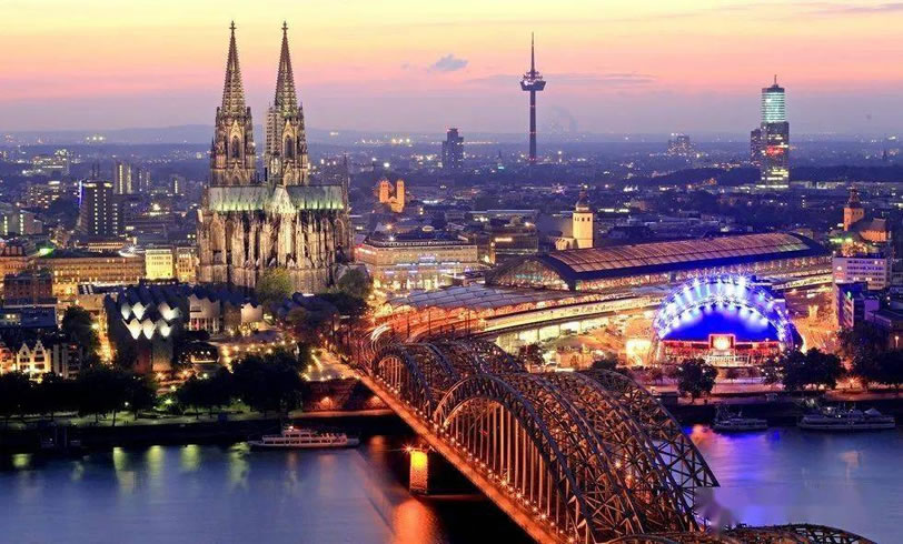 科隆 科隆市(Köln/Cologne)是德國的第四大城市,人口100.7萬,面積405平方公里,僅次于柏林、漢堡和慕尼黑,是一座大都市,市中高樓大廈鱗次櫛比,是一個繁華的商業(yè)城市,也是德國西部萊茵河畔歷史文化名城和重工業(yè)城市。 一譯“科倫”。公元前38年建為古羅馬要塞。曾是漢薩同盟主要成員。因位居歐洲東西和南北交通要沖,中世紀時經(jīng)濟已頗發(fā)達。十九世紀中葉后,隨魯爾煤田開發(fā)和鐵路修筑,發(fā)展更迅速。巨大水陸交通樞紐,重要的河港。科隆-波恩航空站位于東南郊,市內(nèi)有通往布魯塞爾、波恩等地的直升飛機場。工業(yè)有軍工、冶金、機械、化學、制藥、煉油、紡織、食品等部門。全國重要褐煤產(chǎn)地之一,建有大火電站。全國金融中心之一。第二次世界大戰(zhàn)時遭嚴重破壞。多古跡,如著名科隆大教堂(圓頂上的兩塔尖高達161米)、羅馬時代地下廣場等。馬克思和恩格斯曾在此創(chuàng)辦《新萊茵報》。 科隆還是一個以羅馬式教堂和哥特式大教堂聞名于世的城市。屹立在萊茵河邊的科隆大教堂高157.31米,它有兩座哥特式尖塔,北塔高157.38米,南塔高157.31米?坡〈蠼烫檬鞘澜缟献罡叩碾p塔教堂,它已成為科隆市的象征和游客們向往的名勝之地。站在高高的塔頂極目遠望,萊茵河猶如一條白色的緞帶從旁飄過。
