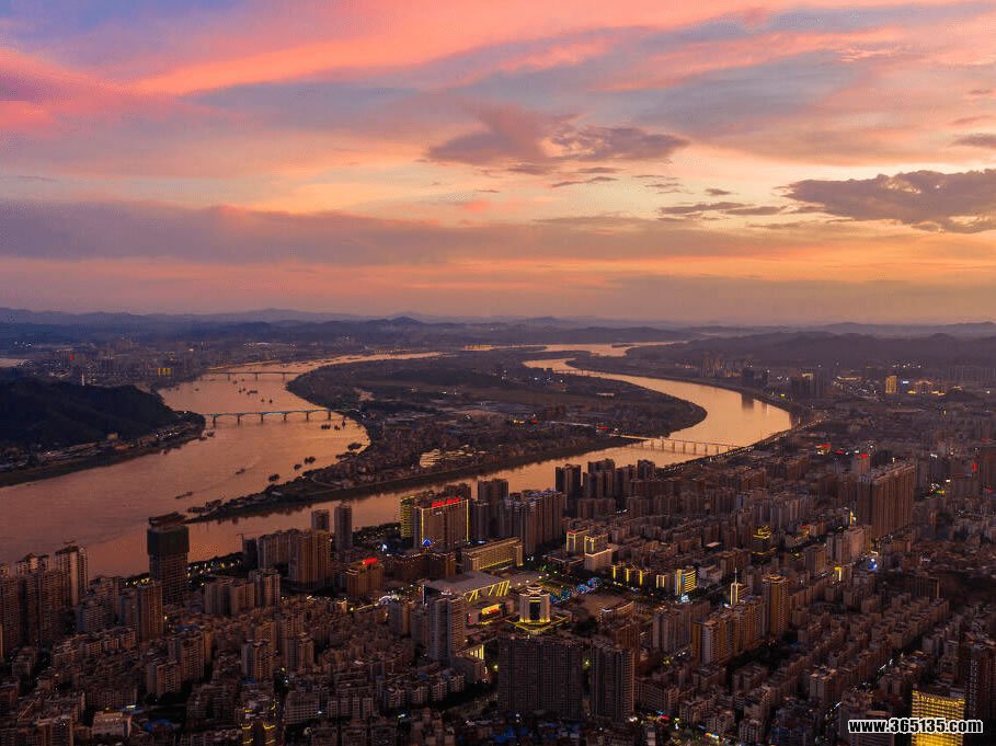 梧州市晚霞映山城