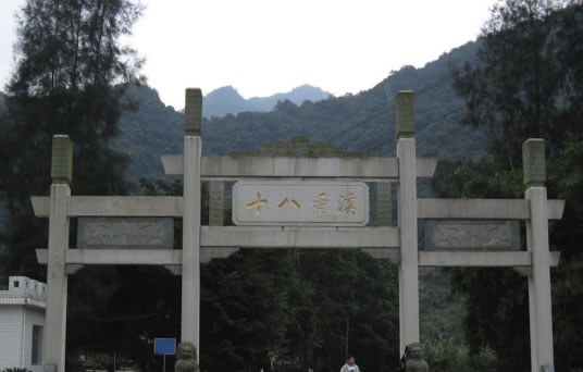 流域面積約62平方公里,其間水平長度500米以上的溪流有24條,取名“十八”,形容其多。奇特的火山巖地貌、典型的季節(jié)河、成群的野生彌猴為該景區(qū)的三大特色。