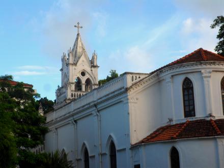 位于鼓浪嶼鹿礁路34號,該址原為西班牙領(lǐng)事館,后西班牙領(lǐng)事館撤消,改為法國領(lǐng)事館。民國五年(1916年),西班牙多明我會傳教士馬守仁被羅馬教廷任命為廈門教區(qū)主教,把田尾路一座作為多明我會會所的樓房與法國領(lǐng)事館交換,把領(lǐng)事館改為主教樓。民國六年(1917年)在主教樓前面建教堂,作為主教座堂,建筑面積287平方米,該樓是一座哥特式單鐘樓教堂。教堂正中祭臺供奉耶穌君王像,兩邊各有一個小祭臺,可容納200人左右。