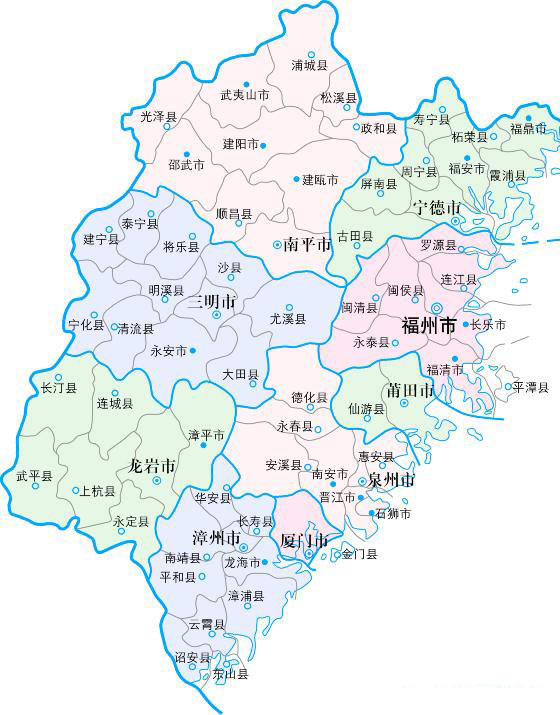 | 福建位于中國(guó)大陸的東南沿海,東臨太平洋和臺(tái)灣隔海相望,西北部高山連綿,中部丘陵起伏,沿海平疇沃野,海岸曲折,島嶼棋布。