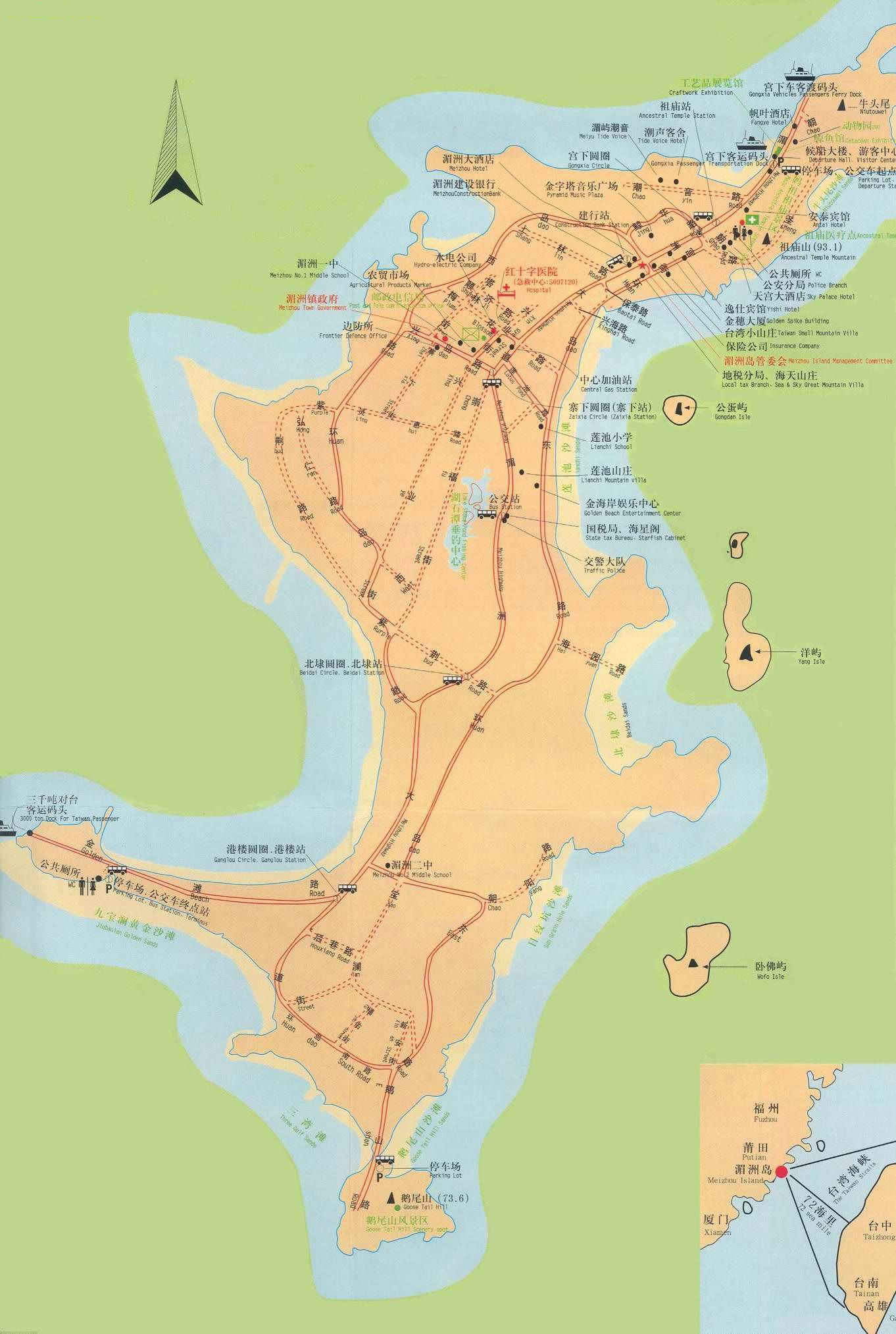 湄洲島有3條公交線路: