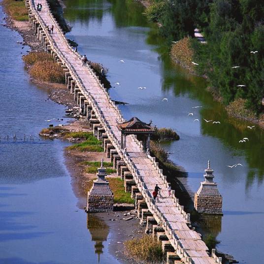 安平橋,曾用名五里橋、西橋、安海橋,是中國福建省泉州市境內(nèi)連接晉江市和南安市的一座橋梁,是世界上中古時(shí)代最長的梁式石橋,也是中國現(xiàn)存最長的海港大石橋,是古代橋梁建筑的杰作,享有“天下無橋長此橋”之譽(yù)。