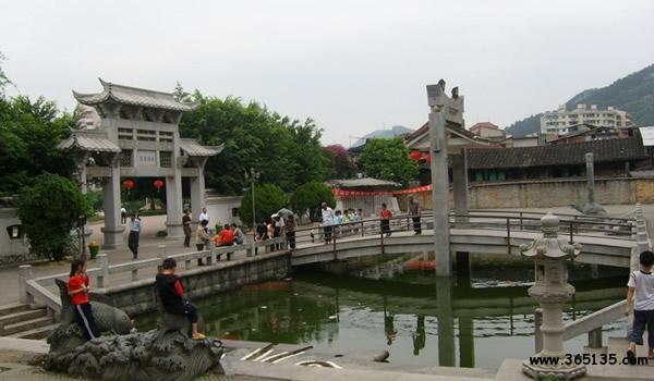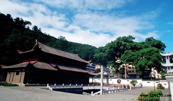 南溪書院:在尤溪縣城南的公山之麓,原為邑人鄭義齋館舍。北宋宣和五年(1123年),朱熹之父朱松任尤溪縣尉,去官后寓居于此。南宋建炎四年(1130年),朱熹在此誕生。朱熹逝世后,縣令李修于嘉熙元年(1237年)捐資在此修建文公祠、韋齋祠、半畝方塘和尊道堂等建筑,祀朱家父子。寶元年(1253年),宋理宗賜額“南溪書院”。元至正元年(1341年),分建二祠,明清后屢有修繕擴建。書院古樸莊嚴,現建筑面積1000平方米,有韋齋祠、觀書第、毓秀坊、毓秀亭等建筑。正堂當中立朱熹石膏塑像,兩旁是朱子手書板聯四幅:“讀書起家之本 和順齊家之本 勤儉治家之本 循理保家之本”。四壁高懸其上溯八代列祖列宗畫像。書院內的方塘,為朱熹幼年讀書處。朱熹《觀書有感》詩曰:“半畝方塘一鑒開,天光云影共徘徊;問渠那得清如許,為有源頭活水來”。其中的“半畝方塘”即指此處。明弘治十一年(1498年),知縣方溥主持,把半畝方塘擴大浚深,并建亭于塘上,通以石橋,取名“活水亭”,今皆修復。