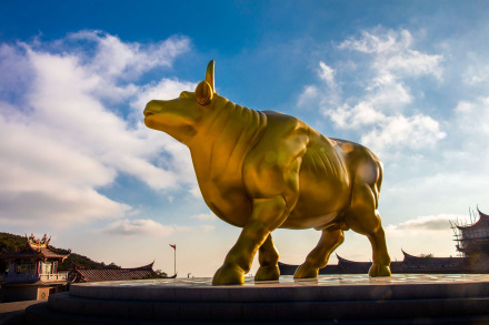 重修的祖殿東側(cè)小山坡上有頭福光萬(wàn)丈的金牛,游客沿花紋元素登高臺(tái)階可得“福祿壽喜”祝福,金牛底座設(shè)置成轉(zhuǎn)盤(pán),游客可根據(jù)自己的吉時(shí)轉(zhuǎn)動(dòng)牛的方向,再?lài)@金牛轉(zhuǎn)行,可完成“牛轉(zhuǎn)乾坤,人轉(zhuǎn)錢(qián)來(lái)”的祈福體驗(yàn)。