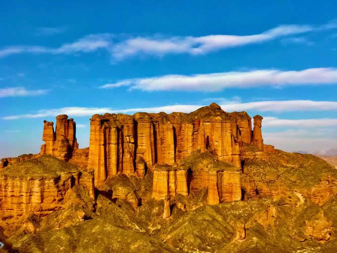 冰溝丹霞地貌以“雄、險(xiǎn)、奇、幽、美”而著稱,是大自然鬼斧神工的杰作,素有“赤壁千仞”之稱,被譽(yù)為“天下第一奇觀”,是攝影愛好者的天堂。其主要特點(diǎn)是:類型豐富,造型奇特,形態(tài)多樣,組合良好世間罕見。有窗欞狀、柱廊狀、泥乳狀、疊板狀、陡崖狀、蘑菇狀、蜂窩狀等多種地貌形態(tài),以宮殿式、劣地式、糧囤式為主。它具有一般丹霞地貌發(fā)育所表現(xiàn)出來的丹霞石柱、崖壁、石墻、巷谷、一線天、孤峰殘丘等代表丹霞地貌發(fā)育各個(gè)階段的形態(tài)特征,其地貌表現(xiàn)為峰林結(jié)構(gòu)其山石高下參差,疏密相生,群峰林立,組合有序,千姿百態(tài),富有韻律感和層次感,在造型上有很強(qiáng)的表現(xiàn)力、可視性、可塑性和極高的觀賞性,因此又被譽(yù)為“大西北的紅色石林”。