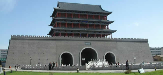南城門又名昭武門,始建于隋朝,明代重修,原城樓為重檐歇山頂式建筑,造型古樸雄偉。據(jù)說,每當(dāng)天氣晴朗無風(fēng)的時(shí)候,夜晚登上城樓,可以清晰地聽到如細(xì)雨在瓦上淋漓的聲音,故有“夜雨打瓦”之稱,是涼州八景之一。