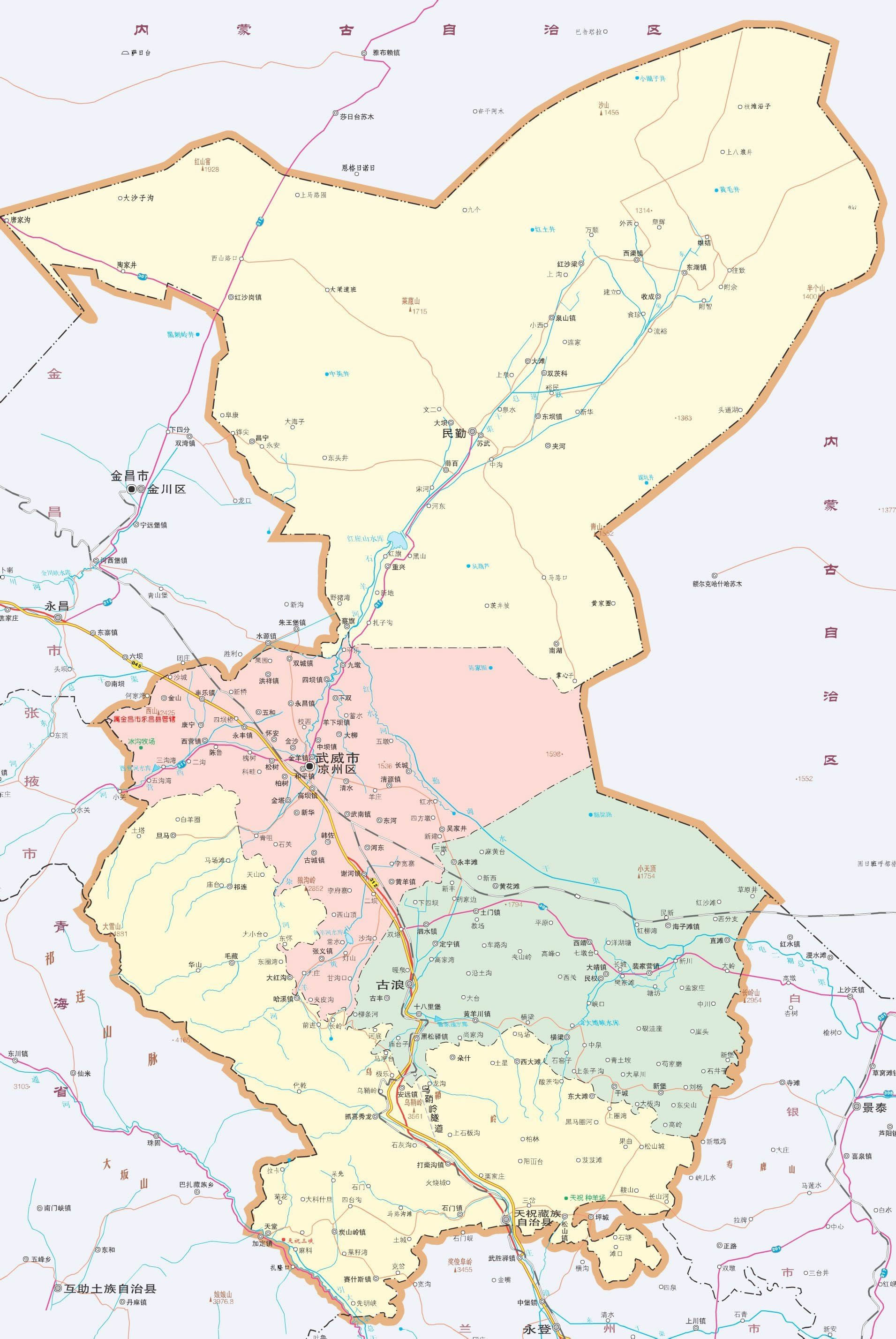 武威市轄1個(gè)區(qū)、2個(gè)縣、1個(gè)自治縣: