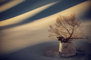 夫妻柳裁植于1971年,是同根系長(zhǎng)出的兩株相互依偎的旱柳,被稱為“夫妻柳”。它們?cè)邙Q沙山月牙泉陪伴下共度無(wú)數(shù)寒暑歲月,成為游人駐足留戀的大漠一景。1997年,一場(chǎng)沙塵暴襲擊了歷經(jīng)劫難的“夫妻柳”,夫妻柳不幸從根部折斷。后在工作人員的精心呵護(hù)下,夫妻柳起死回生夫妻柳重現(xiàn)枝繁葉,形如一對(duì)戀人繁育出了更為強(qiáng)盛的下一代。
