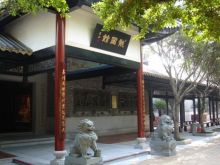 龍圖館極具嶺南古代建筑風格。前后有廊,中間有天井,風火山墻。館外館內(nèi)均有不少磚雕、木雕、泥塑、灰塑等,造工精巧,古樸典雅。大門外18棵羅漢松排列成行,象征包公出巡時的儀仗隊。旁邊是一排紅花紫薇,開花時節(jié),嫣紅翠綠,相映成趣!褒垐D館”橫匾下,有對聯(lián):“木石有靈再現(xiàn)包公清正事,匠師無憾巧傳百姓仰廉情”,“投硯鎮(zhèn)江流尚有遺待明古訓,蜚聲留宋典不曾枉法負平生”。既頌揚了包公輝煌政績,又突出了龍圖館的文化內(nèi)涵。