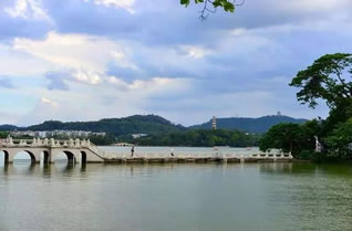惠州西湖面積遼闊,湖岸彎環(huán)曲折,湖上洲嶼點(diǎn)綴、三面青山環(huán)抱。湖泊東西最寬處達(dá)4公里,南北最長(zhǎng)達(dá)6公里,面積最大時(shí)有10平方公里,湖區(qū)面積約80平方公里。在煙波浩淼的湖面上,堤橋如帶,把湖面分割成五大部分,素有“五湖六橋”之稱。北宋大文學(xué)家蘇東坡贊惠州“山水秀邃”。這里是廣東著名的5A級(jí)國(guó)家風(fēng)景名勝區(qū)和旅游勝地。