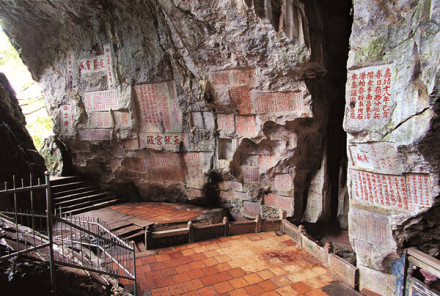石室洞內(nèi)外的摩崖石刻,不僅是一首首文情并茂的山水詩,而且是千年滄桑歷史印記。