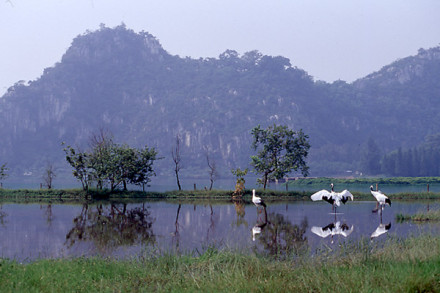 “丹頂鶴生態(tài)園”有丹頂鶴50多只,它們身姿高雅而端莊,兩翅不時輕舒慢舞,引著修長婀娜的脖子,偶而亭亭玉立,偶而輕盈踱步。它們時而高歌,時而飛翔,像是歡迎遠(yuǎn)道而來的客人。仙女湖中幾個自然的候鳥群島,它們由四個小島組成,分別名曰:藏珠、瑤玉、云起和小瀛洲。這四個小島和一旁的招鳥島以及小島周圍半徑150米水域范圍被列為生態(tài)絕對保護(hù)區(qū)。