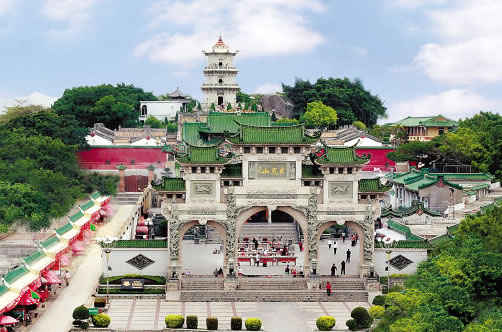 海豐蓮花山度假村(AAAA級(jí)旅游景區(qū))位于汕尾市海豐縣城北部7千米處,主峰海拔1337.3米,為粵東沿海第一高峰,狀如一朵盛開的蓮花,故名蓮花山。南麓坡面上,層巒疊嶂,翠綠相間,堆疊而起,層次分明,形成“蓮峰疊翠”的天下奇景。境內(nèi)云霧繚繞,森林密布,生長著仙人茶、羅漢松、白木香、胭脂木等珍稀植物;飛瀉著玉龍噴須、三井回音、龍?zhí)讹w瀑、七星疊瀑、雙龍瀑、回音瀑等18處瀑布;分布著召貢、埔仔等溫泉及大、小東門、天池、如來盤石等自然景觀,具有雄、奇、險(xiǎn)、秀、幽之特色,是廣東省的四大名山之一。明清時(shí)期,有高僧在此創(chuàng)建雞鳴寺、云蓮寺、金竹寺等7座古剎,宗教文化發(fā)達(dá),被譽(yù)為“蓮花佛國”。歷來有白玉蟾、劉克莊、文天祥、丁日昌等名人在此隱居或經(jīng)過,寫有贊美的詩篇。近代有周恩來、彭湃、徐向前、古大存等在此開辟和建立革命武裝根據(jù)地,留下紅四師師部遺址等。1995年3月,經(jīng)廣東省林業(yè)廳批準(zhǔn),建立廣東蓮花山森林公園。