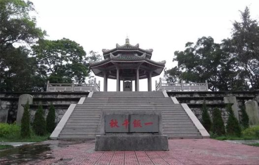 方飯亭位于汕尾市海豐縣城北郊五坡嶺上,坐西北向東南,占地960平方米。亭為六柱八角重檐攢尖頂,通高9米;亭內(nèi)覆蓋著一座廡殿頂古石亭,上刻“方飯亭”三字,內(nèi)豎立石碑刻有文天祥半身畫像,像上方陰刻小篆《衣帶銘》:“孔曰成仁,孟曰取義,惟其義盡,所以仁至,讀圣賢書,所學(xué)何事,而今而后,庶幾無愧!”兩側(cè)亭柱刻有明潮州狀元林大欽所撰對聯(lián):“熱血腔中只有宋,孤忠?guī)X外更何人!蓖で坝形鍖34級(jí)臺(tái)階通于嶺下草埔,當(dāng)中橫置著“一飯千秋”的石刻碑,兩旁豎立著歷代重修碑記,周圍竹木蔥蘢。該亭始建于明代正德十年(1515年),為紀(jì)念南宋丞相文天祥抗元在五坡嶺不幸被捕而建。亭前原有主建筑“表忠祠”和“忠義牌坊”,于民國二十七年(1938年)秋遭侵華日軍飛機(jī)炸損。1955年,海豐縣政府撥款重修方飯亭,并加蓋八角大亭予以保護(hù)。1957年5月,被縣政府頒布為縣級(jí)文物保護(hù)單位。