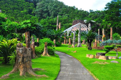 全園分為天上人間景區(qū)、湖區(qū)、廟區(qū)、沙漠植物區(qū)、化石森林景區(qū)和松柏杜鵑景區(qū)等六大景區(qū)。建有別有洞天、兩宜亭、玉帶橋、龍尊塔、聽濤閣、攬勝亭、蝶谷幽蘭等十幾處園林景點,并建有獨具特色的古生物博物館。