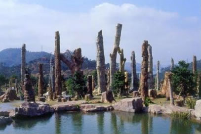 化石森林景區(qū)由四部分組成:化石森林、深圳古生物博物館、香港回歸紀念林、桃花園。化石森林從1997年開始籌建,占地2萬平方米,收集引進了來自遼寧、新疆和內蒙古等地的硅化木500多株。這些硅化木經專家鑒定屬松杉類植物,形成于一億五千萬年至七千萬年的中生代時期。那時正是球果類植物演化史中最鼎盛的時期,高大的樹木由于激烈的地殼運動而被埋在地層之下,經過硅化作用形成了化石。迄今,這是世界上唯一一座大型遷地保存的化石森林。古生物博物館利用化石、圖片、多媒體技術等材料以一種系統(tǒng)完整和易于理解的方式解釋了地球上生命的歷史。