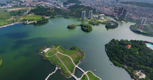 鴛鴦湖位于陽江市中心。水面積為47公頃,為天然的氣溫調(diào)節(jié)湖。鴛鴦湖湖水清澈,湖岸楊柳垂堤,山清水秀,花繁葉茂,樓臺閣榭點綴其間,與綠樹相映成趣,別具南國湖光韻味。湖邊有南國風箏場,1991年建成,占地12萬平方米,“南國風箏場”由原廣東省省長葉選平題字。風箏場可容數(shù)萬群眾同時進行放飛風箏娛樂活動,是市民和游客休閑、娛樂的好去處,是我國極負盛名的風箏放飛場,每年在這里舉行放風箏比賽。