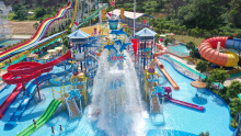 水城的游泳區(qū)由兒童池,標(biāo)準(zhǔn)池和深水池組成。兒童池的水深50cm;標(biāo)準(zhǔn)池深為1.5米;階梯式的深水池分層為深度1.5米和2.5米-3米。更有長(zhǎng)達(dá)1000多米,高度落差達(dá)到28米的“九寨水城空中滑道”。