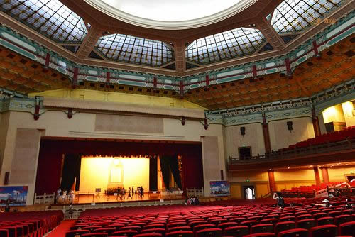 紀念堂內(nèi)部結(jié)構(gòu)異常堅固,全部用鋼架和鋼筋混凝土構(gòu)成,大堂內(nèi)空間極大,舞臺前上、下兩層有4729個席位,而中無一柱遮擋,全由隱蔽在墻壁間的八根大柱支撐,堪稱建筑藝術(shù)之杰作。
