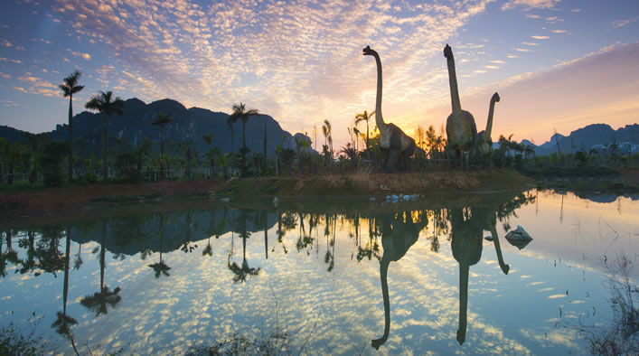 龍谷灣恐龍主題公園是國(guó)家AAAA級(jí)旅游景區(qū),位于扶綏縣上龍大道999號(hào),距南友高速公路扶綏出口3公里。占地面積3000畝,是龍谷灣旅游休閑度假區(qū)的一期工程,于2017年元旦建成開(kāi)業(yè)。公園由遠(yuǎn)古呼喚、多媒體體驗(yàn)中心、動(dòng)感地帶、兒童王國(guó)、恐龍谷等板塊組成,是集科普研學(xué)、旅游觀光、游樂(lè)體驗(yàn)為一體的亞洲最大的恐龍主題公園。龍谷灣旅游休閑度假區(qū)瞄準(zhǔn)“3.5小時(shí)經(jīng)濟(jì)圈”休閑度假市場(chǎng),突出恐龍文化和壯族民俗文化,規(guī)劃建設(shè)主題公園、特色小鎮(zhèn)、商業(yè)綜合體、田園綜合體、康養(yǎng)旅居城、體育旅游、智慧旅游、國(guó)際教育、民宿、汽車旅游營(yíng)地等,形成龍谷灣恐龍公園、國(guó)際慢生活商業(yè)中心、錦繡八桂田園綜合體、國(guó)際酷玩休閑世界、國(guó)際共享康養(yǎng)旅居城五大區(qū)域。