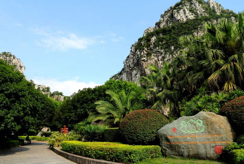 桂林園林植物園位于桂林市中心西南隅,環(huán)城西一路117號(hào)。園林植物園占地47.9公頃。園內(nèi)南溪河自西向東貫通全園,公園入口處的黑山因石灰?guī)r山石經(jīng)風(fēng)化之后呈墨黑色而得名。整個(gè)植物園以園林植物為造園骨架,掘土為池,構(gòu)木為亭,園區(qū)內(nèi)分別建有茶花園、春華秋實(shí)園、棕櫚園、榕樹(shù)園、木蘭園、銀杏楓香園、大草坪、桂花博覽園(蘇苑、杭州苑、上海苑、包公亭、天香臺(tái)閣苑)、水杉林、梅花園和珍稀植物園等精品園區(qū),還有巧借山形地貌構(gòu)筑的盆景園、下沉式廣場(chǎng)、櫻花園(日本園)、歐洲園(法國(guó)園)、相思泉等景觀式亭臺(tái)樓閣。園內(nèi)植物種類達(dá)1000多種,品種達(dá)2200多種。特別是桂花博覽園收集了桂林所有的優(yōu)良桂花品種,并引種了四川、浙江等地10多個(gè)優(yōu)良品種,共有桂花品種80多個(gè),是國(guó)內(nèi)外同類園區(qū)桂花品種最多,也是銀桂品種最多的桂花園,是全國(guó)3個(gè)“中國(guó)桂花品種繁育中心”之一,第二屆中國(guó)桂花博覽會(huì)的主會(huì)場(chǎng),為中國(guó)取得桂花國(guó)際登錄權(quán)作出了特殊貢獻(xiàn)。珍稀植物區(qū)森林茂密,曲徑通幽,有國(guó)家一級(jí)保護(hù)植物杪欏、金花茶等珍稀植物,也有國(guó)家二級(jí)保護(hù)植物金錢松、柔毛油杉、黃枝油杉、福建柏、興安楠、蝴蝶果、鵝掌楸、馬尾松、花櫚木等喬木。